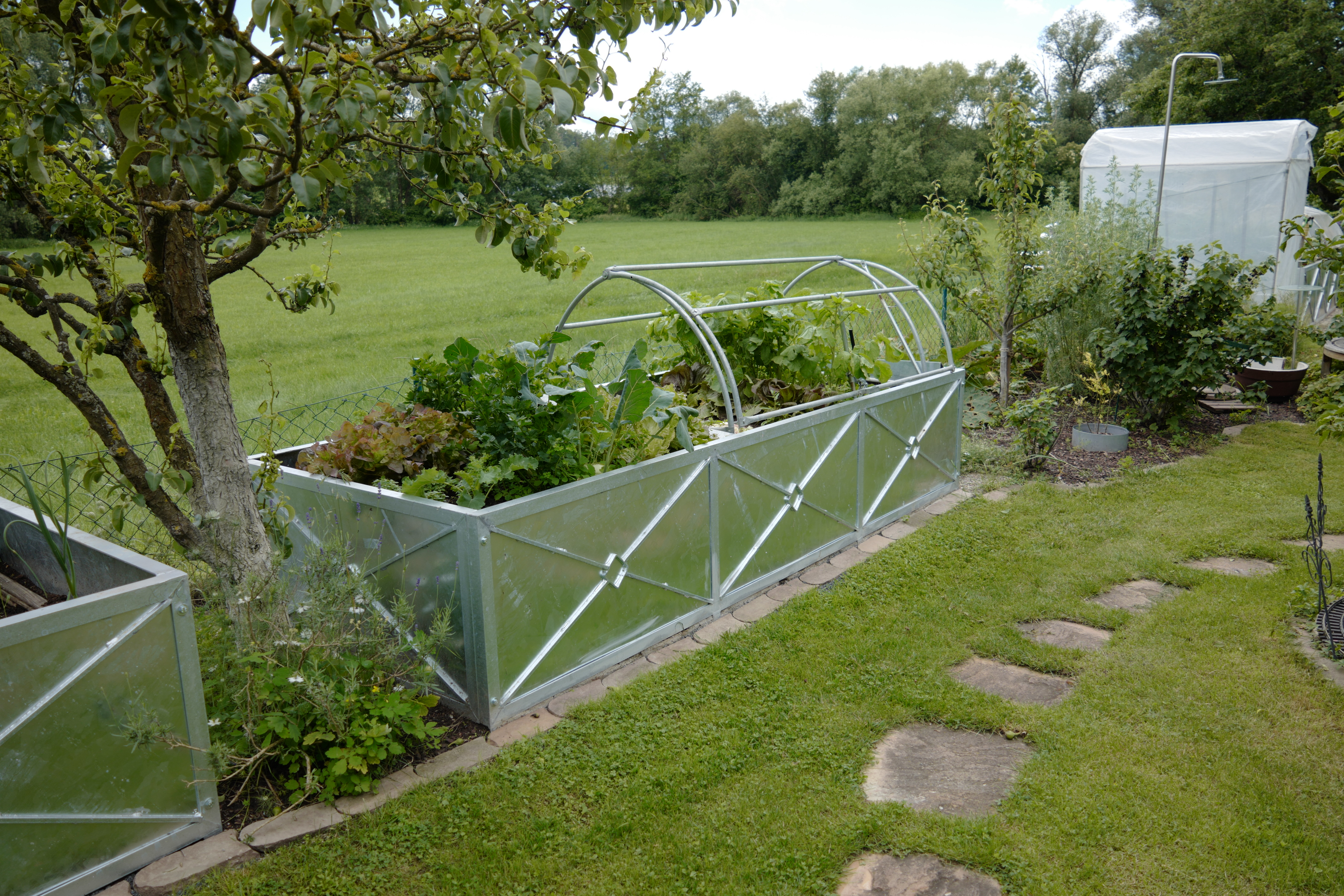 Der Garten liegt an einem sonnigen Südhang. Die Grenzen verschwimmen durch den Blick auf eine landwirtschaftlich genutzte Wiese, die vom Flüsschen Zenn begrenzt wird. Rund 50 Jahre alte Obstbäume werden ergänzt durch verschieden gestaltete Blumenbeete z. B. „Weißer Garten“, „japanische Ecke“, „Winterlingteppich“ oder „kunterbunter Phlox“, dazwischen Kräuter und Gemüseanbau in Hochbeeten der verschiedensten Form.
