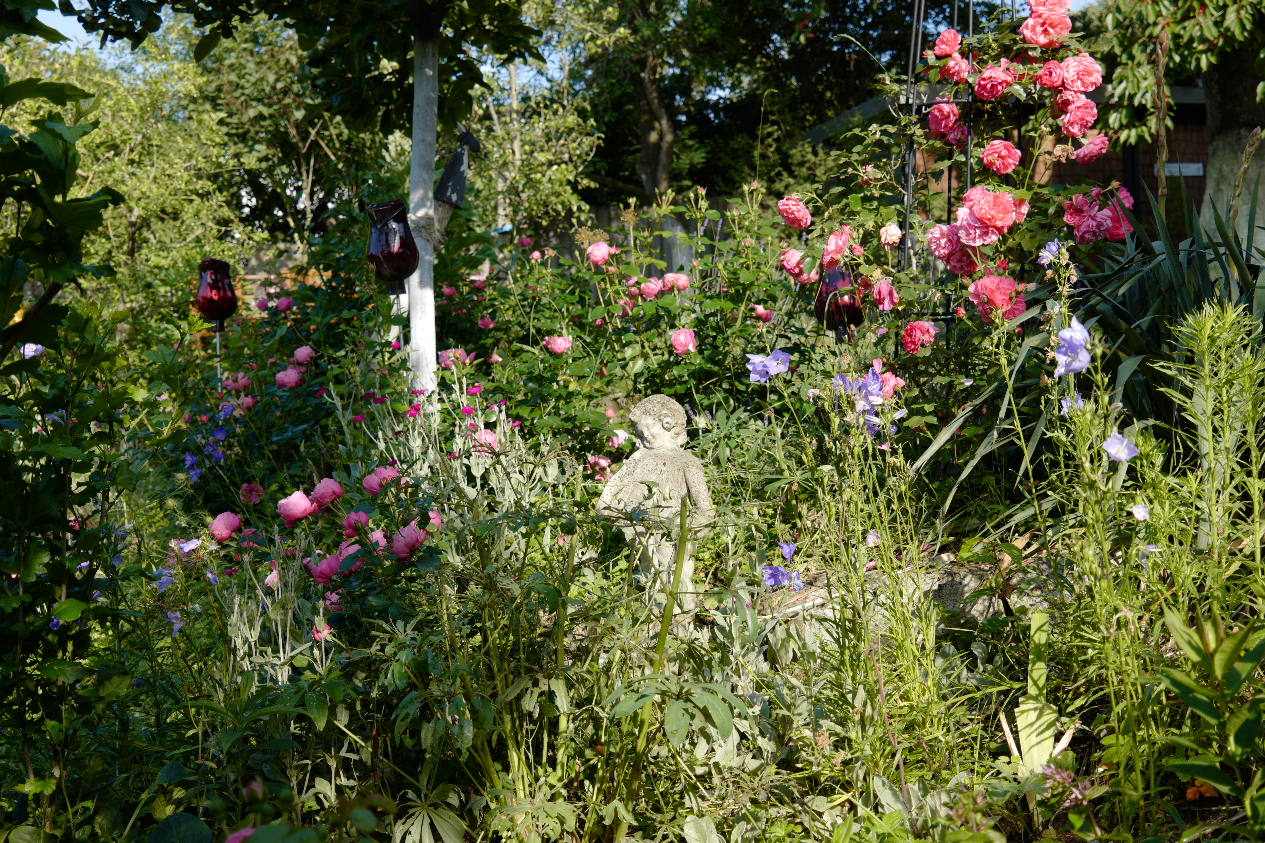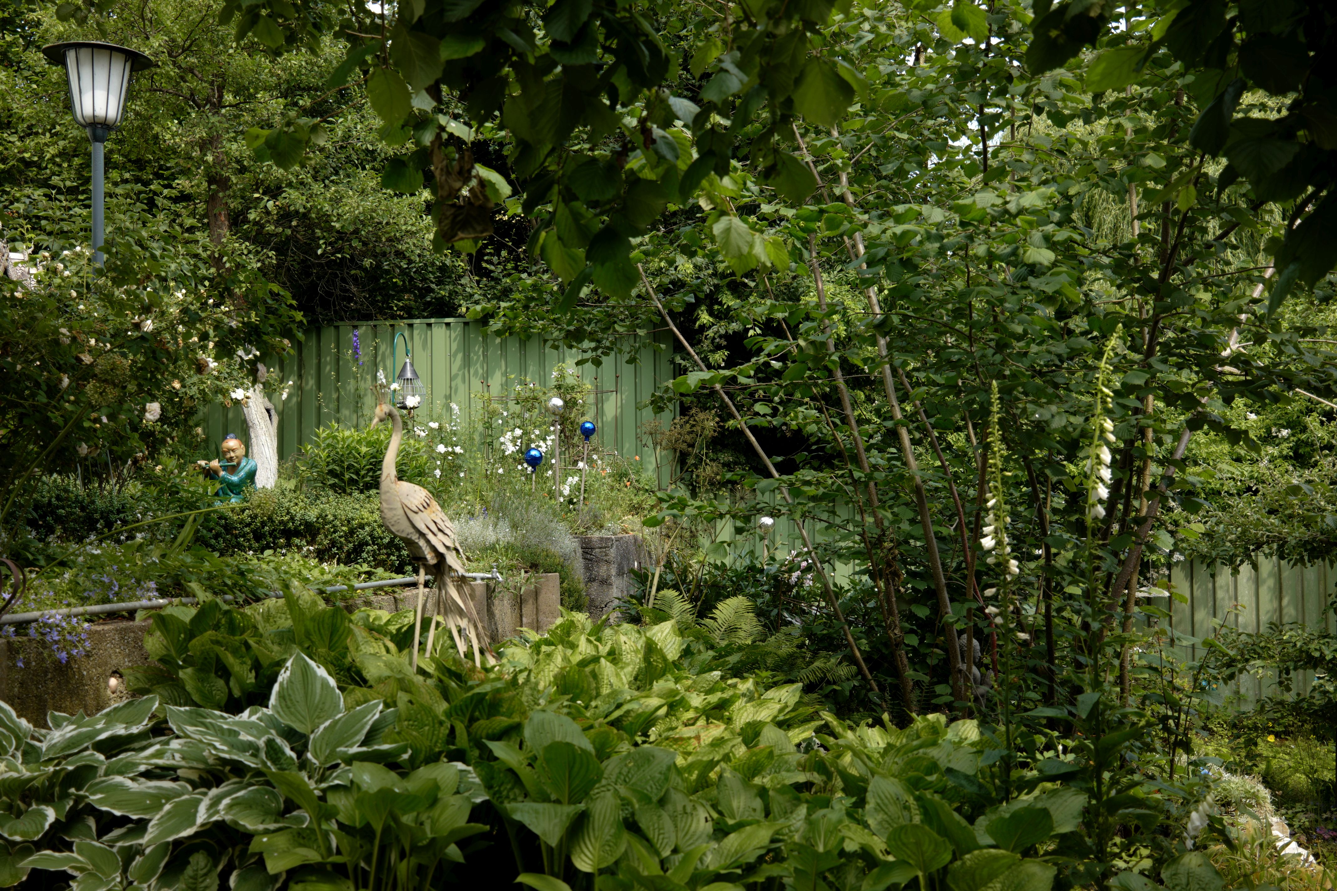 Kunterbuntes Gartenglück zwischen Kräutern und KamelienRenate Trautwein ist Historikerin und Gästeführerin in Nürnberg. Neben Stadtführungen zu verschiedenen Themen lädt sie auch in ihren rund 1.000 m² großen Privatgarten ein. Ihre Besucher lässt sie den Garten mit allen Sinnen erleben. Südengland und Schottland lieferten die Inspiration. Die Blumenbeete wurden soweit wie möglich den hiesigen klimatischen Bedingungen und der Freizeit des Gartenbesitzers angepasst. Gießintensive Pflanzen oder Hecken sind auf ein Minimum begrenzt, drei Kamelien, eine Magnolie, einige Hortensien und ein Rhododendron sind die Ausnahmen. Der Garten ist somit sowohl ein Ort der Entspannung, liefert aber auch Beeren, Obst, Kräuter und Gemüse zur Selbstversorgung.